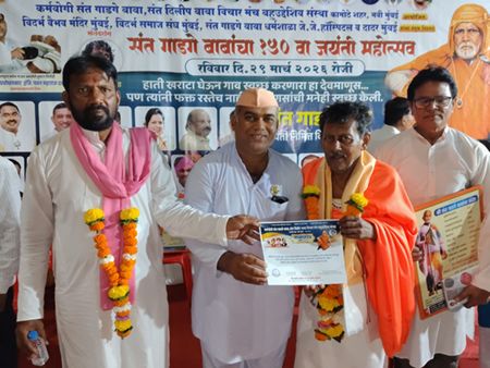 On Sunday, March 29, 2026, a grand event was held at Khandeshwar, Navi Mumbai, organized by Saint Gadge Baba Saint Dilip Baba Vichar Manch, Vidarbha Vaibhav Mandir Mumbai, Vidarbha Samaj Sangh Mumbai, and Saint Gadge Baba Dharmshala. The event was attended by dignitaries including Saint Dilip Baba, local leaders, MLAs, MPs, and other respected guests.